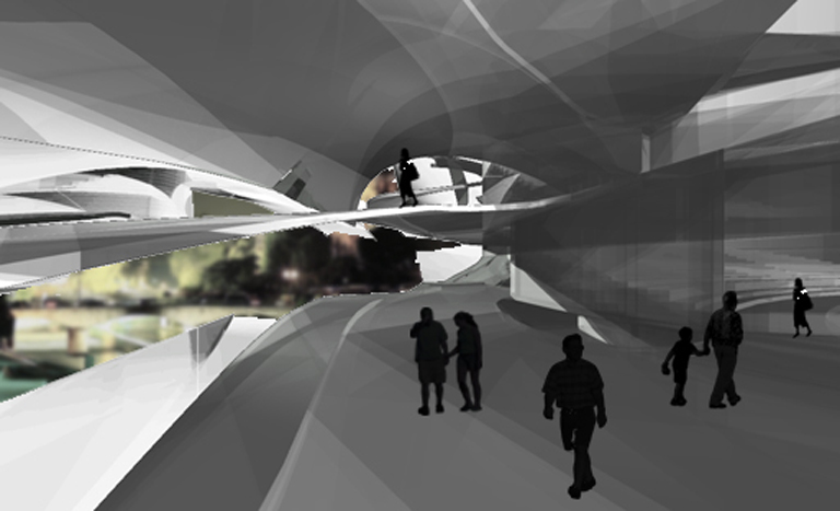 Our aim is to dissolve boundary through negotiation and collaborate the different entities into a balance environment. Our proposed scheme will encourage mixture and reunion of the two sides of city by being a new landmark and gathering point of the city.